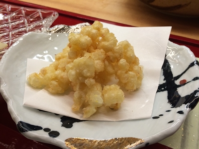 つづいてとうもろこしのかき揚げをお願いしました!甘くておいしい〜!食材へのこだわりがとっても伝わってきますよ!