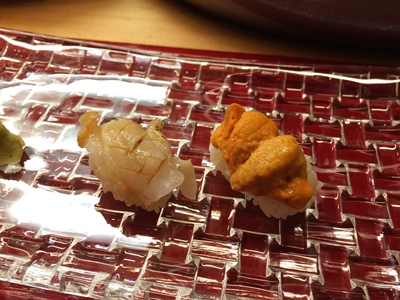 北海道の特産と聞いたような貝とうにがにぎりで登場しました!もうめちゃめちゃおいしそう〜!とってもおいしかった記憶があります!