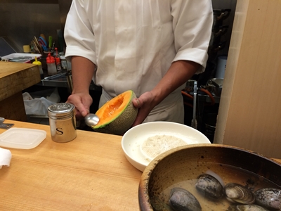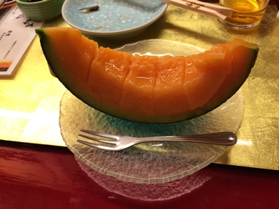 でも最後だけは記憶にのこっています!もう立派なメロンをだしてくださいました!大胆に二つに割って、メロンをどどーんと!もうおいしいのなんのって!