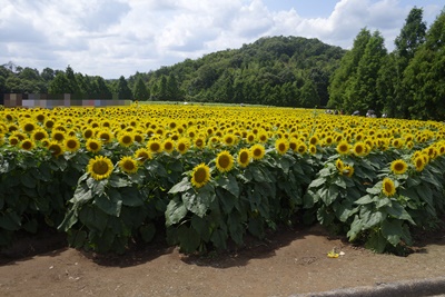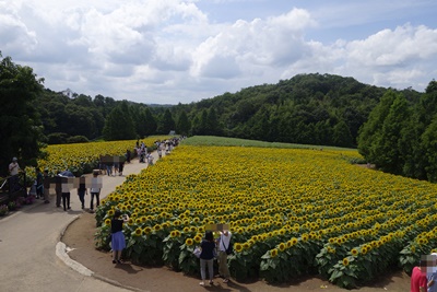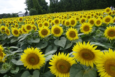 チケットを購入して、入場すると、、、うわ〜〜〜〜!ひまわりが満開でした!ちょうど見ごろでした〜〜!ラッキー!あたり一面ひまわりです!今年も100種、110万本のひまわりが咲き誇っています。