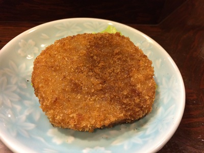 てへ。つづいて、こちらをサービスしてもらいました!せきやさんのメンチカツ!これ、ほんとたまに食べたくなるんですよね〜!おいしい〜!