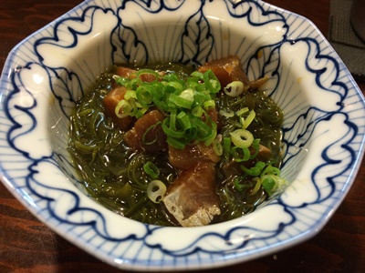 ここからは珍しくお酒タイム!お酒を楽しめるように、まぐろとめかぶ和え、もずく、トマトとお願いしました!ぐいぐいお酒が進みますね〜!ほんとにおいしいのなんのって!