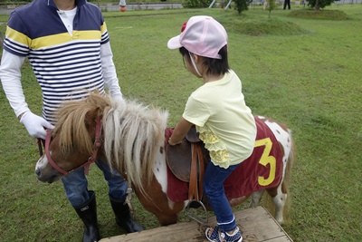バスで戻って、広場の遊具で遊ぼうと思ったら!!!なんとポニーが来ていました!毎週何かのイベントがあるのですが、こちらもラッキーなことにポニーがきているとは!もちろん娘ははしゃいでポニーに乗っていましたよ〜!結局2回も乗馬!