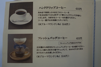 メニューをみてみると、、お店で販売されている珈琲以外にもいろいろ面白いものがあるようです。その中で一つ目に付いたのが、、、呉女子カフェオレ!なんとお店の自慢のアイスコーヒーKING OFICE100%で作った珈琲氷に牛乳をいれてカフェオレ気分でいただくんだそうですよ〜!