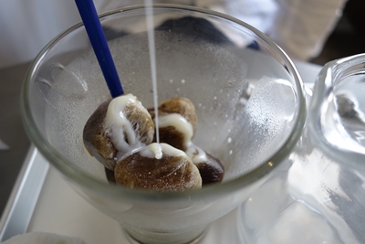 「最後に珈琲氷に練乳をかけて召し上がってみてください。」