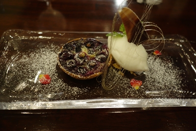 この日はまずはブルーベリーの自家製タルトと自家製ヨーグルトアイスをいただきました!ブルーベリーの香りがたまりませんね〜!サクッとそしてしっとりした食感もちょうどいいです!ヨーグルトのアイスもベリーナイス!雨細工も目の前でみせていただきましたが、見ていてたのしいですね〜!