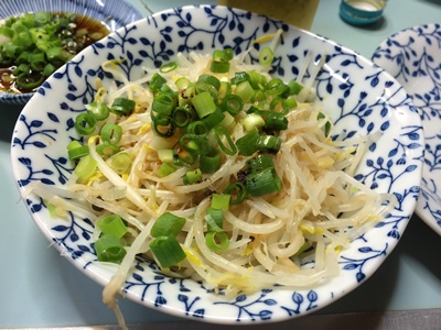 待っている間はもやしをいただきながら、ビールをおいしくいただきましょうね〜!
