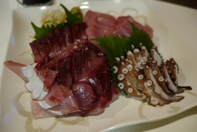 まずは生ビールで乾杯しました!この日は先輩が釣ってこられたコシナガマグロとブリをいただく日でした〜!テーブルの上にはお皿いっぱいのお刺身が!いただいてみると、、、おいしい〜!これはおいしいですね〜!20キロくらいあったそうですよ〜!ブリも鮮度抜群で最高においしい〜!