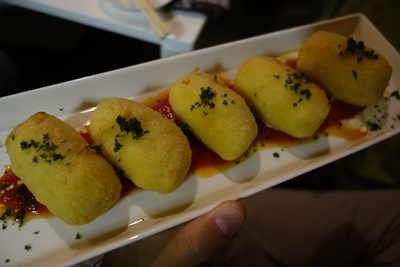 きゃ〜〜〜〜!カニクリームコロッケ大好き〜〜〜!登場したカニクリームコロッケがこれまたおいしそう〜!トマトソースをたっぷりつけていただくと、、、、めちゃうまい!ほっぺたが落ちちゃう〜〜〜!