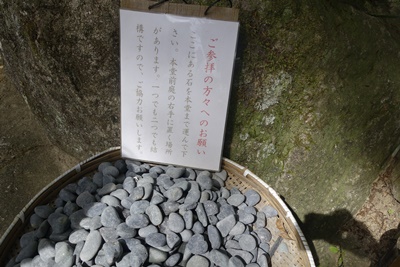 三滝寺の参道入口に到着して、まずは石を2つほど持ってのぼっていきます。本堂にお渡しするんですね〜。上るといってもそんなに距離もないので、本堂までは15分もかからないくらいですよ〜!途中もみじの木や滝などをみながらのぼっていくんです。