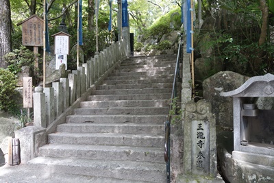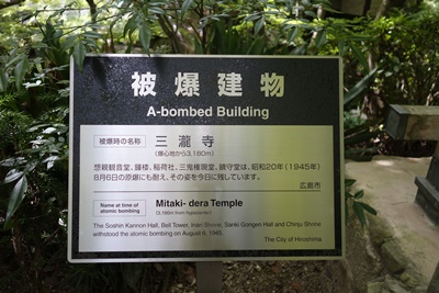 三滝寺は被爆建物でもあるんですよ〜!この時期はまだまだ日中は日が差せば暑いのですが、この参道は木々がほどよく日の光をさえぎってくれるのでとってもすずしく、そして適度な湿度があって心地よいですよ〜。