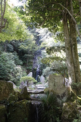 三の滝の目の前の池では真ん中の灯篭にお金を投げて真ん中に入ると願い事がかなうと言われているそうです。2回やって、、、外れましたが、、、