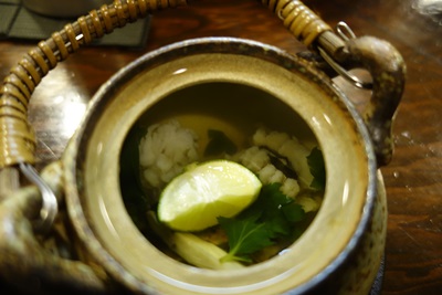 こうなったら土瓶蒸しもいただきたくなってお願いしました!もうお出汁がとってもおいしくってあっという間に飲み干しちゃいました!マツタケっていつまであるのかな〜。もう少しですかね〜!