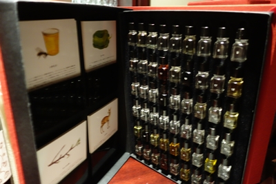「これはワインの香りのサンプルなんです。ソムリエの練習用などに使います。いろんな変な香りもありますよ〜!」