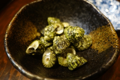 続いておつまみとして、つぶ貝をいただきました!まちばりで中から上手に出していただくとうれしくなりますね〜!ご先祖様たちはよくぞこの貝をおいしくいただけるって教えてくれましたよね〜!なかなか食べようと思いませんもんね〜!