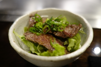 ハートランドの樽生を頂きながら、お通しをいただきます。な、な、なんと!!ハラミ!最近なかなか国産のハラミって見ていないのですが、、まさか、、、。おいしい〜〜〜〜!超がつくほどおいしいです!感動!