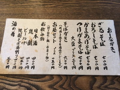 メニューをみながら何をいただこうかなと、、、、、やっぱりおろし蕎麦かな〜!ということで私はおろし蕎麦をお昼セットでお願いしました。友人はかまあげを注文していました〜!