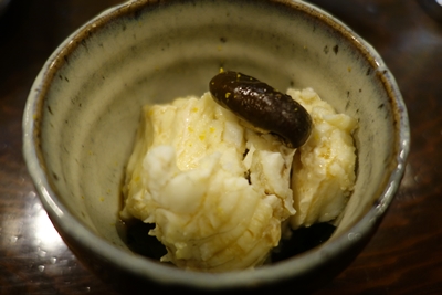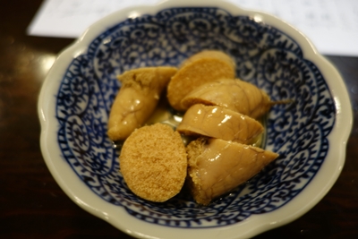 と出していただいたのが、、、なんとコチの胃袋と肝!胃袋は食感がいいですね〜!おいしい〜!肝も濃厚!最高でした〜!