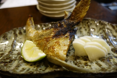 ひらまさのかまを塩焼きにしていただきました〜!こちらもおいしい〜!日本酒がよくあいますね〜!