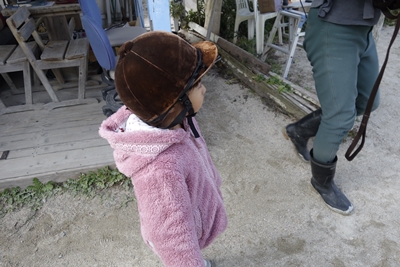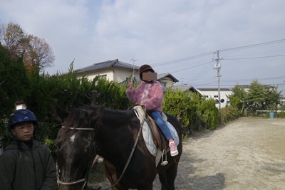 いつもは引き馬していただくのですが、この日から少し常歩のあと速歩や軽速歩をやってみることに〜!娘はまだ4歳ですが、2歳のときからちょくちょく乗せていただいておりまして、まったく怖がることなく馬にちょこんとすわっています。最初は落ちちゃうんじゃないかとか心配でしたが、全く心配なし!