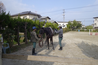 軽速歩では馬の内側の前足が地面につくと同時におしりをあげるという練習をさせてもらいました!インストラクターのお兄さんから