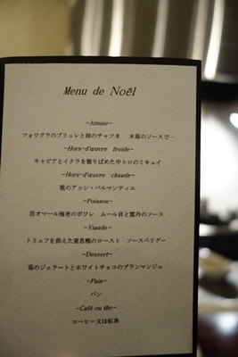 そんなルペールさんでこの日はクリスマス期間の特別ディナーを堪能させてもらいました。おいしそうなメニューですね!