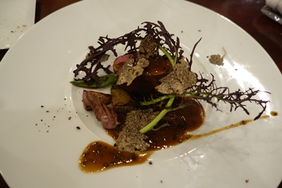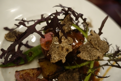 最後は窒息鴨が登場しました〜!しかも上からはたっぷりとフレッシュトリュフが!トリュフの香りを久方ぶりに!いただくと、、うわ〜〜〜!おいしい〜〜!本当においしい〜〜!最高ですね!エシェゾーともばっちりあいます!