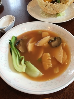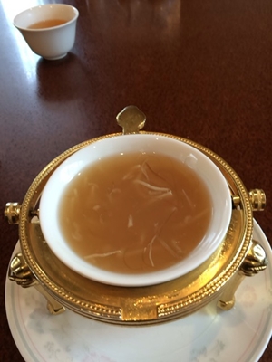 続いてフカヒレスープが登場しました〜!けっこうふかひれが入っていたのでうれしいですね〜!