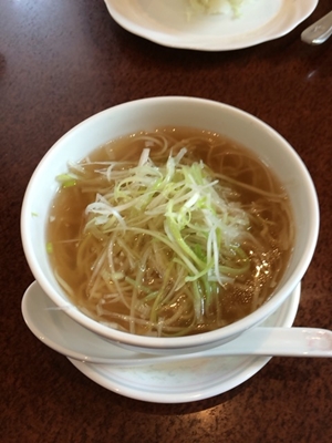ここでアワビの煮込みが登場しました〜!大きめなアワビでしたよ〜!隣の席のお客さんが葱ソバをおいしそうにすすっている音を聞いてしまい、、早く葱ソバがたべたくなってしまいました〜!