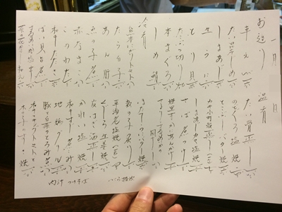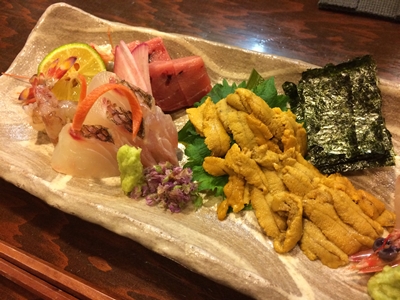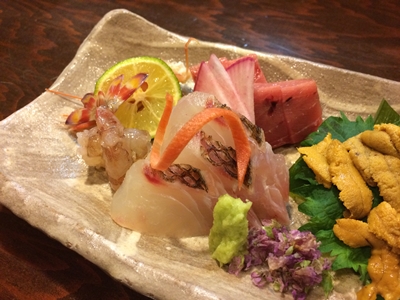 メニューを見てみると、今年もとってもおいしそうですね〜!車えびを見つけました!ということで、お刺身は車えびとまぐろとタイ昆布〆と生ウニをお願いしました〜!