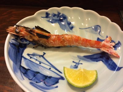 つづいて、車えびの焼きが登場しました〜!こちらもこれまたおいしいそう〜!皮をむぐ必要もなく、ぱりぱりといただけました〜!うまいの一言!