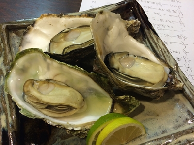 ここでカキ小町をいただきました〜!今年はカキ小町でさえ小さいものが出回っているようですが、今日は大き目のカキ小町で大将も安心されていました〜!とってもぷりっぷりでおいしいですね〜!