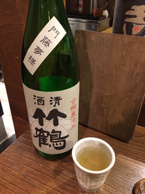 一緒におすすめの日本酒をいただきます!竹鶴さんの門藤夢様ですね〜!おいしいですね〜!