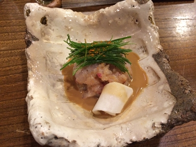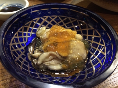 最後に大将が牡蠣を出してくださいました〜!ポン酢ジュレがよくあいます〜!大きな牡蠣に感動!