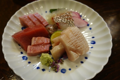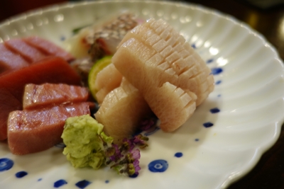 そこに登場したお刺身がこちら!うわ!これ、ぶりなんですか!?私の知っているぶりとは色合いが違うような気がします!いただいてみると、、うまい〜〜!というかとろけすぎ〜〜〜!ぶりってとろけるんですね!感動しちゃいました!ラッキーですね!