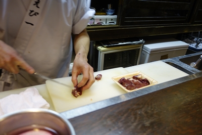 大将が丁寧に目の前でライブで肝を下ごしらえしてくださいました。このライブ感もたまらないんですよね〜!