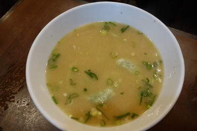 つづいて気になったみそ水餃子をおねがいすると、、、なんとお味噌汁の中に水餃子が!これは新しい〜!いただくと、、なるほど!思ったとおりのお味でしたよ〜!