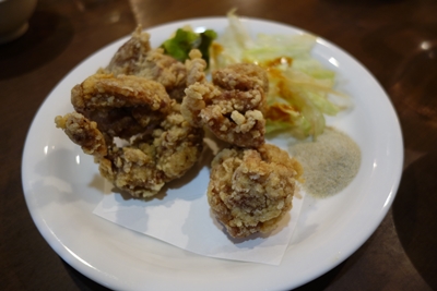 瓶ビールをいただきながら待っていると、、、登場しました〜!おいしそうな餃子です!カラッと揚がっている感じですね〜!いただいてみると、、、うん!なるほど〜!こういう飽きのこない餃子だったんですね〜!