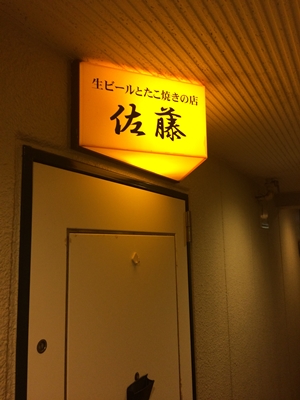 さて、先日ご紹介いたしましたとってもおいしい生ビールととってもおいしいたこ焼きがいただけるお店、佐藤さんに早くも再訪してまいりました。前回行ったメンバーと一緒だったのですが、全員が全員たこ焼きを食べたいという願望を抱いていたようでどこにいこうかという話になった際に、すぐにたこ焼きで決まっちゃうほどでした。
