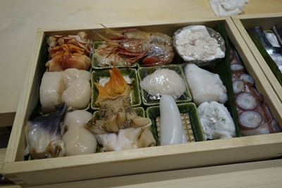 と、ぎっしりとおいしそうなネタがつまった木箱を見せてくださいました〜!うわ〜!おいしそう〜!全部食べてかえりたいぐらいですね〜!