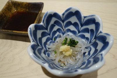 まず最初はシラウオが登場しました!うっすら味をつけてあってとっても上品!おいしいですね〜!期待が高まります!