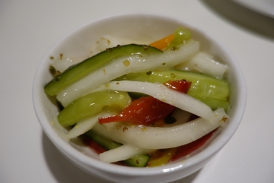 まずはピクルスが登場!食感といい味付けといいとってもおいしい〜!びっくりしました!おかわりしたいくらいでした!