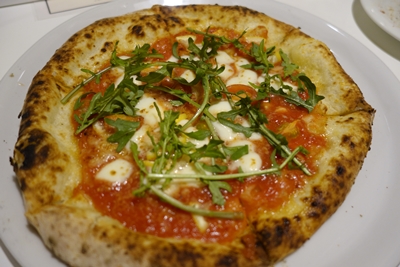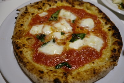 そこへブーファラが登場しました!水牛のモッツァレラにバジルが!おいしそう〜!いただいてみると、、、うわ!す、、、す、、、すごい、、、おいしい〜!まず生地が普通と違いました!もっちもち!しかもそのもっちり感がいままで経験したことのないような感じでおいしい〜!癖になる〜!トマトソースもおいしいです!