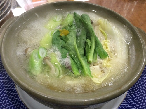 つづいて湯豆腐をお願いしました〜!娘さんが作られていたのですが、湯豆腐といいながら他のお野菜もたっぷり入れてくださっていました〜!あとお肉とか入ったら完全に寄せ鍋クラスになるほどですね〜!こちらもおいしい〜!出汁がきっちりとってあるのでたまりませんね〜!