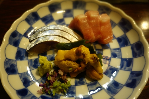つづいてお刺身をお願いしました!本まぐろに〆さば、そして生ウニです!久々にえび一さんでまぐろをいただいたのですが、やっぱりえび一さんのまぐろは超おいしいですね〜!本当にすばらしいおいしさです!最高ですね〜!生ウニもすばらしい!〆さばもこのあざやかな光沢が鮮度を物語っていますね〜!