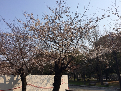 つい先ほど平和公園に行って見ました〜!開花がすすんでいましたね〜!川沿いの桜並木はまだまだつぼみがほとんどなのですが、平和公園の中の桜で結構開花がすすんでいるところがありました〜!