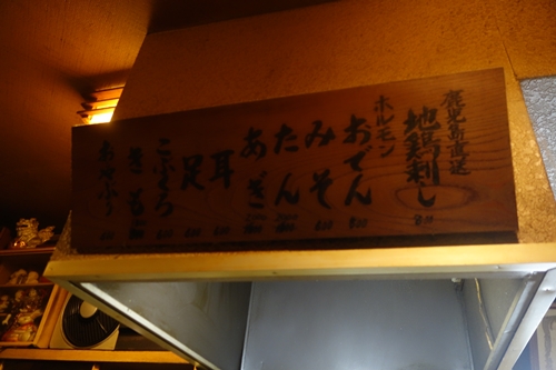 以前は生レバーがあったのですが、今は禁止されているので鹿児島直送の地鶏刺しと牛のホルモンとタンのお店とイメージしていただけたらと思います。まずは瓶ビールで乾杯させていただきました〜!