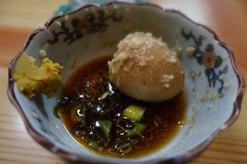 まずはホルモンおでんからいただきます〜!ホルモンおでんが登場する前に、たまごがお母さんから渡されます。そして、、