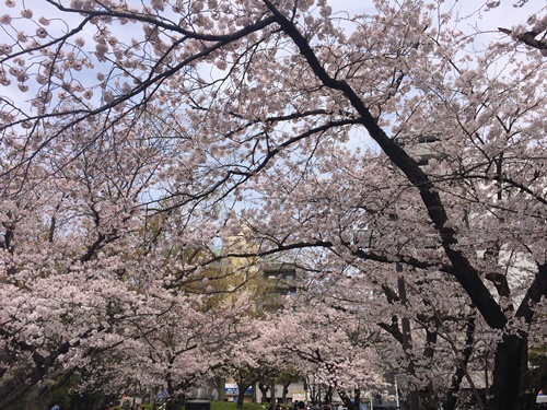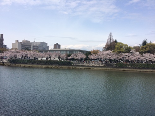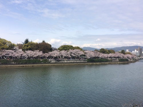 昨日おそらく広島の平和公園の桜は満開を迎えたと思います。昨日はとっても天気がよくってかなり暖かかったのですが、平和公園ではものすごいにぎわっていました。みなさん花見を楽しまれていましたね!