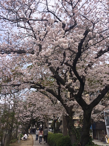 平和公園の対岸から桜並木をみていたのですが、ものすごく鮮やかなピンクでしたよ〜。今日が雨の予報ということもあって昨日しか花見をする機会がないと思われた方も多かったと思います。
